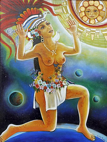Infine altra divinità è Xochiquetzal, o Ichpuchtli, secondo la mitologia azteca,ed è il nome della dea dei fiori, della fertilità, dei giochi, della danza e dell’agricoltura, oltre che degli artigiani, delle prostitute e delle donne incinte. Secondo alcuni sposa di Xochipilli, secondo altri invece sua sorella gemella.