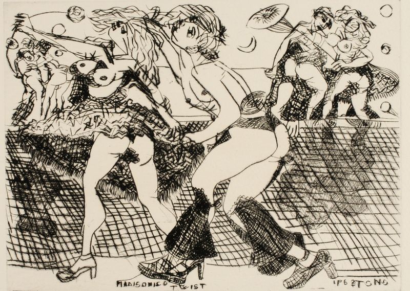 È confrontando le armonie apollineee con quelli che dovevano essere i ritmi sfrenati delle baccanti dionisiache che Tono realizza le linee del Buon Apollo con la lira per le illustrazioni del Paradiso della Divina Commedia, e gli sfrenati ballerini del Madisonico