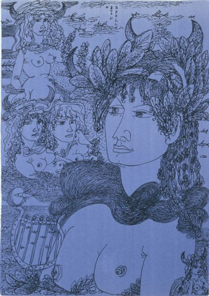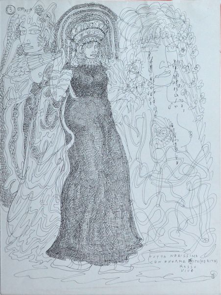 Una nota particolare meritano i tre gruppi di sette fogli, realizzati nel 1973 – 1974 – 1977, “a quattro mani” da Sylvano Bussotti e Tono Zancanaro.
