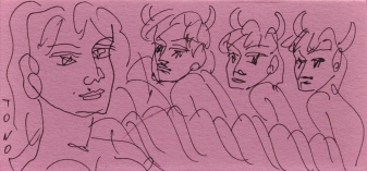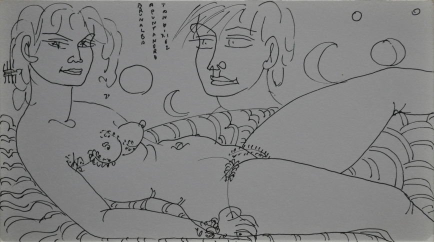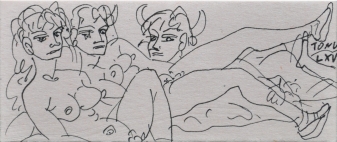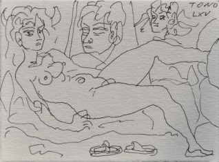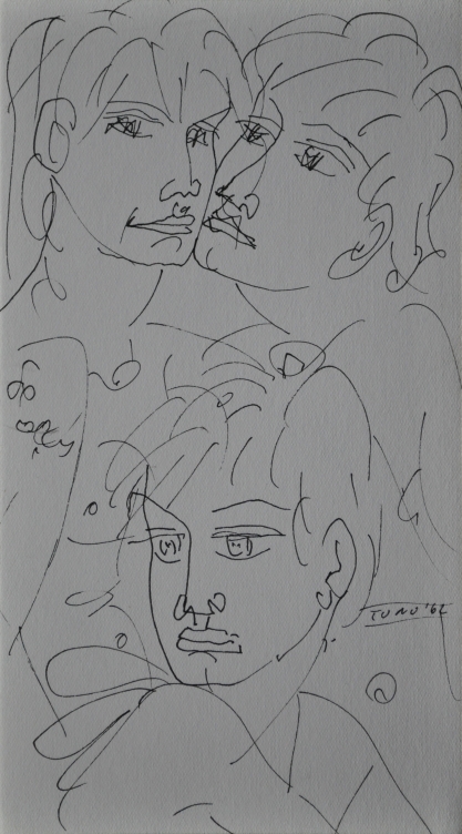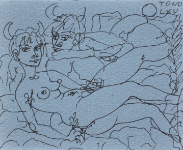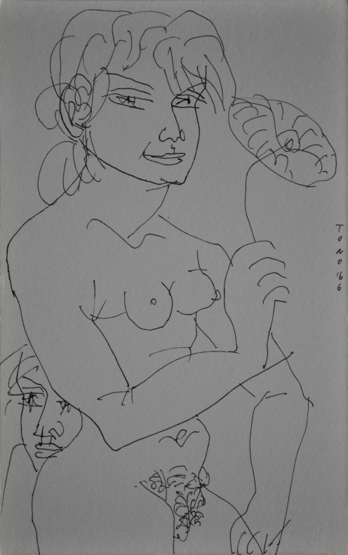 Brunalba è stata uno dei grandi amori di Tono Zancanaro, dopo Olga e Levana. A lei sono stati dedicati centinaia di fogli, quasi tutti disegnati a linea pura, ed ovviamente molti lavori realizzati nel piccolo formato, come quelli qui presentati: